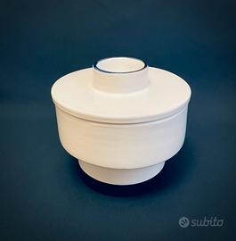 Questo oggetto di Ceramiche Rometti è un contenitore con coperchio in ceramica di colore bianco lucido, caratterizzato da una forma cilindrica con una base leggermente più stretta. Presenta dei dettagli circolari rifiniti in nero/blu, richiamando potenzialmente la tecnica del "Nero Fratta" tipica delle ceramiche di Umbertide, dove l'azienda fu fondata. Il design unisce funzionalità e un'estetica pulita e moderna, tipica delle creazioni senza tempo di Rometti. Dimensioni: Altezza 16cm // Diametro 18cm Condizioni: eccellenti Le foto sono parte integrante della descrizione #umbertide #rometti #romettimadeinitaly #romettivintage #pucciumbertide #ceramicherometti #Ginori #Fornasetti #Alessi #Accolay #Seletti #JacquesBlin #Polspotten #Thesocialitefamily_ #Christofle #rogercapron #Zarahome #HMhome #jacquespouchain #robertpicault #bitossi #Memphis #Cloutier #Sottsass #lalique #moretti #vitra #daum #gioponti #starck #Trudon #Vallauris #vintage #brocante #retro #vintage #deco #decoration #ideedeco #ideecadeau #artsdelatable #antique #ancien #patine x #patina #shabbychic #wabisabi #japandi #scandinavianstyle #hygge #interior #interiordesign #interiordecoration #interieur #decorationinterieur #polspotten #hay #collection #porcelaine #limoges #faience #verre #murano #design #midcenturymodern #antiquemarket #fleamarket #artdeco #artnouveau #modernisme #brutalisme #décoindustrielle #annees50 #annees60 #annees70 #50s #60s #70s #faitmain #ceramics #studioceramics #studiopottery #pottery #terracotta #terrecuite #marbre #onyx #travertin #Zara #meissen #meissenporcelain #zsolnay #zsolnaypecs #herend #herendporcelain #richardginori #royalalbert #villeroyboch #botanica #royalcopenhagen #royalcopenhagencollection #rosenthal #porzellan #porzellangeschirr #porzellanteller #candela #candelaprofumata #yankeecandle #floradanica #royalcopenhagencollection #royalcopenhagenchristmas #royalcopenhagenfigur #statuine #statuinedacollezione #denmark