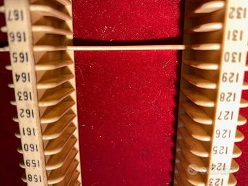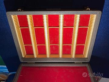 Scatola classificatore per diapositive in legno ma rivestita finta pelle, usata ma in ottime condizioni! Internamente rivestita in velluto rosso.