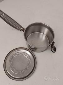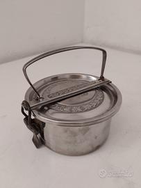 Contenitore " schiscetta " antica anni 60 acciaio argentato Italia epoca 900