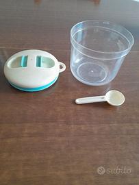Tre contenitori vintage in plastica dura , di misure diverse, con cucchiaino e chiusura ermetica