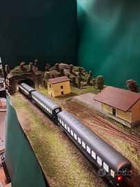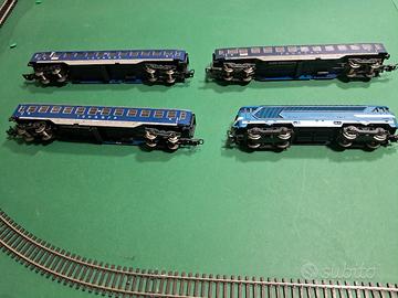 Vendo convoglio formato da Locomotore SNCF Lima 6100T con n.3 carrozze Flaischeman elaborati con illuminazione a bare led e relativo circuito elettronico nonche'sull'ultima carrozza sono presenti le luci di coda lampeggianti indicando il fine convoglio anche sul locomotore sono stati montati i fari a led che si accendono secondo il senso di marcia.N.B per coloro che sono interessati e vogliono vedere il video del convoglio in movimento possono andare su YOU TUBE e cercare come titolo" CONVOGLIO CARROZZE FLEISCHMANN ILLUMINTE CON FANALI DI CODA "" oppure chiamarmi al 3479941743