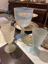 Coppa più 3 calici opaline di colori diversi antichi in buone condizioni