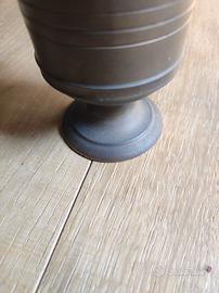 Metto in vendita questa splendida coppa in ottone massiccio d'epoca. L'oggetto si distingue per un'estetica neoclassica sobria ed elegante, tipica dell'oggettistica di pregio del secolo scorso. Non si tratta di un prodotto industriale moderno, ma di un pezzo che conserva il fascino della lavorazione manuale, ideale per chi ricerca dettagli autentici per il proprio arredamento o per la propria collezione. CARATTERISTICHE E DETTAGLI A differenza delle riproduzioni moderne in lamierino, questo pezzo offre: Materiale e Peso: Realizzato in ottone pieno, con un peso importante (oltre 343g) che ne testimonia la qualità costruttiva. Tecnica Costruttiva: La base reca i segni inequivocabili della fusione a terra, con una superficie granulosa e irregolare che garantisce l'origine artigianale del pezzo. La coppa superiore è stata successivamente rifinita al tornio con fasce orizzontali decorative. Patina Autentica: L'oggetto è in ottime condizioni e volutamente non lucidato. Presenta una patina bruna naturale che ne attesta l'età; può essere comunque riportato a specchio con una leggera pulizia se si preferisce la finitura dorata lucida. SCHEDA TECNICA Tipologia: Calice / Coppa Ornamentale Materiali: Ottone massiccio Dimensioni: Altezza 10 cm | Diametro superiore 9 cm | Diametro base 6,4 cm Peso: 343,4 grammi Stato: Vintage originale, non restaurato SPEDIZIONE E IMBALLO Garantisco un imballaggio professionale e rinforzato per proteggere la solidità del calice. Spedizione rapida, tracciabile e sicura. Possibilità di ritiro a mano nella zona di Bologna. ENGLISH DESCRIPTION Antique solid brass decorative cup. Hand-cast using traditional foundry techniques (visible casting marks on the base). Heavyweight item (343g) with a beautiful unpolished vintage patina. Height: 10cm. Perfect for classic home decor or collectors. Tracked international shipping available. TAGS SEO Coppa ottone, calice antico, ottone massiccio, fusione a terra, antiquariato, vintage decor, oggettistica scrivania