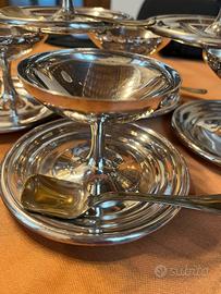 Sei coppe gelato con piattini acciaio inox anni 60 e sei cucchiaini placcati in argento 1000 ritiro a domicilio