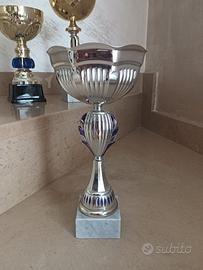 Vendo lotto di 5 trofei in ottime condizioni, 3 dei quali con base in marmo, altezza di circa 35 cm, al prezzo di 75 euro.