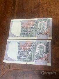 coppia banconote diecimilalire emissione 1968 versione anni 70/80 serie possesso:FB543675R EC 542206Q