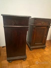 Coppia 2 comodini antichi noce marmo comodino casa collezione da casa, camera da letto, penso metà dell’ottocento