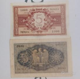 Lotto 2 biglietti di Stato 5 lire Regno. Prezzo affare non trattabile. Da collezione