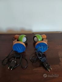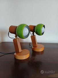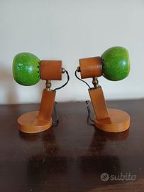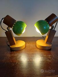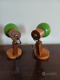 Coppia abat-jour verdi con base in legno, periodo anni 70, in buono stato, revisionate e perfettamente funzionante, originali, altezza cm. 20, diametro base cm. 9, diametro diffusore cm. 8, viste e piaciute, consegna a mano zona Parma, su richiesta si effettuano spedizioni, per visionare altre lampade di modernariato, antiche o vintage, cliccare sul mio profilo