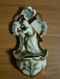 Coppia di acquasantiere da parete in porcellana biscuit dimensioni cm.19 x 9. Da collezione.