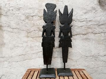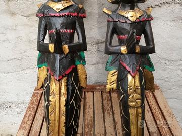 Coppia antiche sculture in legno estremo Oriente
