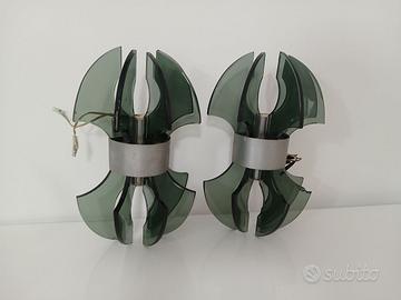 Coppia Applique Veca Vintage Anni 70 Vetro Cristal