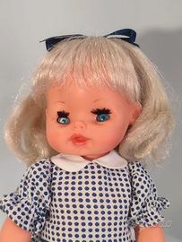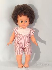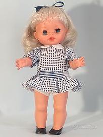 Vendo ad un piccolo prezzo una deliziosa coppia di bambole una FURGA ed una RATTI, vintage degli anni 60/70 sono usate ma in buone condizioni. La bambola RATTI è alta cm. 35 circa, è degli anni ’60 ed ha il vecchio marchio RATTI sul collo, indossa il suo completino originale una tutina in cotone a righe bianca e rossa. La bambola FURGA è alta cm. 30 circa ed è degli anni ’70, indossa anche lei gli abiti originali: mutandine bianche di cotone ed un delizioso abitino bianco e bleu e scarpine nere lucide, faccio notare che è dotata di un meccanismo non testato pertanto venduta non funzionante. Le bambole hanno entrambe capelli ben radicati, morbidissimi e lucidi e non li perdono; gli occhi azzurri richiudibili. GUARDATE LE FOTO PER UNA MIGLIORE DESCRIZIONE. Posso consegnare ad Ancona e limitrofi, concordando con massima serietà Oppure spedire in tutta Italia