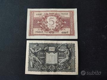 Coppia banconote 5 lire 10 lire Italia 1944