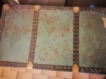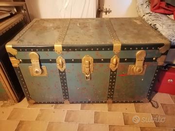 Condizione: I bauli sono usati e mostrano i segni del tempo (ruggine superficiale e usura), che ne aumentano il fascino vintage. Strutturalmente sono solidi.