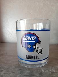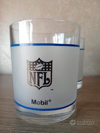 2 bicchieri in vetro con stampa a tema football americano NFL. New York Giants. Gadget benzina Mobil fine anni 80 0. Made in Italy. Condizioni ottime. Vendibili anche separatamente.
