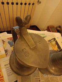 coppia di antichi boccali/brocche da vino in peltro con decoro a ghiande di area francese. antichi vintage