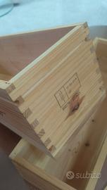 Le cassette cantinette sono pari al nuovo, molto ben realizzate, con lavorazione incastro coda di rondine, legno pulito e forte, con coperchio da appoggio che in caso di utilizzo va inchiodato, su uno dei due coperchi c'è la scritta Albarossa 2011.