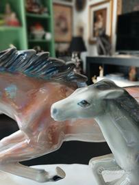 Scultura vintage in ceramica raffigurante una cavalla con il suo puledroSpesso attribuita a manifattura italiana Sesto Fiorentino. anni '40 / '50.