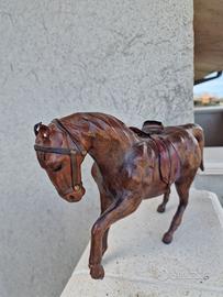 Coppia di cavalli in carta pesta rivestita in pelle anni '80, da collezione. Oggetti in buone condizioni, presentano segni di usura come foto.