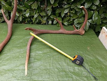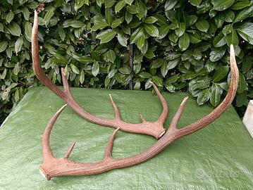 Vendesi splendida coppia di palchi di cervo originali in perfetto stato di conservazione. I pezzi presentano un colore bruno naturale molto intenso e una perlatura marcata, ideali per arredamento stile baita, chalet o per la creazione di oggetti di design e artigianato (manici di coltelli, lampade, ecc.).