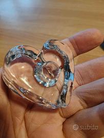 Deliziosa coppia di portacandele a forma di cuore. - Realizzati in vetro trasparente. - Design a forma di cuore. - Misura: 5x5x2,5. - Senza candele.
