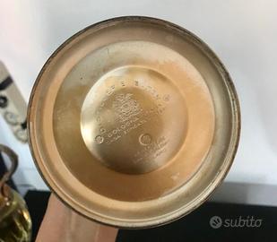 Coppia di decanter ad anfora anni79/80 con liquore Buton originale La forma e lo stile di questi decanter sono iconici, edizioni speciali d'epoca di Buton, Materiali e design: I decanter mostrano una combinazione di vetro intagliato per il corpo della bottiglia e metallo (argento placcato Argenteria Galbuati) per la base, il collo e il manico, con dettagli decorativi che richiamano uno stile classico Vendo a € 25 cadauno