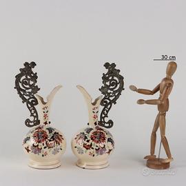 Coppia di anfore in ceramica francese con beccuccio lobato e anse insellate in