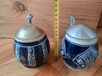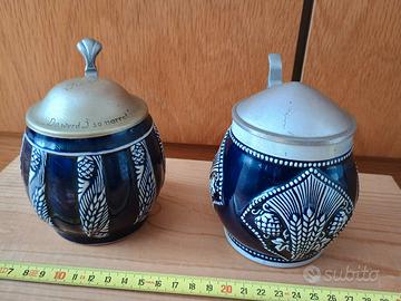 coppia di antichi boccali da birra Bavaresi in ceramica da 200ml. Alti 12 cm larghi 10 cm con manico 12 cm.