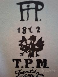 Coppia di antichi piatti in porcellana della manifattura tedesca TPM (Tiefenfurth Porzellan Manufaktur) ora Parowa (Bassa Slesia - Polonia). Sono dipinti a mano con motivi floreali e ornato in rilievo e oro. Diametro cm. 12 Al fondo compare il marchio in blu cobalto TPM sovrastato da un'aquila. Periodo successivo al 1882.