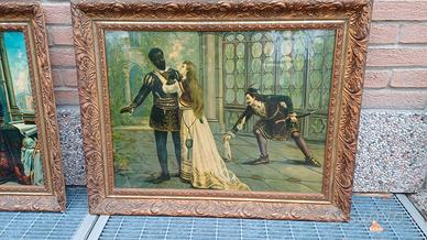 Coppia di antiche cornici fine 800 inizi 900 con raffigurazione cromolitografie di scene di " OTELLO" Moro di Venezia dall opera di Shakespeare , tratti da quadri di Giuseppe Castiglione.