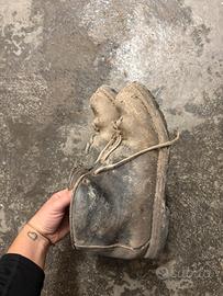 Vendo coppia di antichi scarponi da lavoro in cuoio, originali d’epoca, presumibilmente fine ‘800 / primi ‘900.