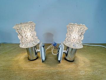 Coppia di applique vintage davvero affascinante, attribuite a Targetti Sankey degli anni 60/70, il cuore del design Mid-Century. Hanno una base in metallo cromato lucido che dà subito un tocco di classe, mentre il paralume in vetro pressato e lavorato a diamante aggiunge un dettaglio raffinato e unico. Sono perfette per chi ama l’arredo d’epoca e vuole portare un po’ di stile retrò e charme nelle proprie stanze. Puoi usufruire del pagamento protetto e sicuro con spedizione tracciata, completa di numero di tracciabilità. E se dovesse succedere che il tuo acquisto si perda, o viene danneggiato, si è coperti per spese di acquisto e spedizione! Per qualsiasi domanda, o chiarimento, fammi sapere!