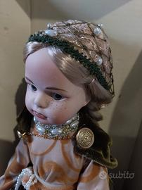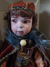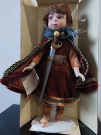 Coppia di bambole nuove, Re Artù e Ginevra, in confezione originale. Sono realizzate in porcellana bisquit e dipinte a mano. Costumi storici in tessuto. Edizione limitata con certificato di autenticità.. Altezza 34cm. Fornite di piedistallo. Consegna a Firenze.