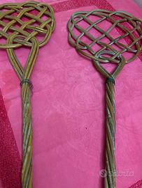 Coppia Battipanni in vimini vintage-Vecchi batti tappeti anni 50/60 Intrecciati. Come in foto Difetti e usura come da foto