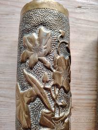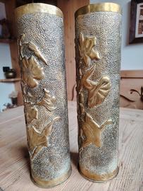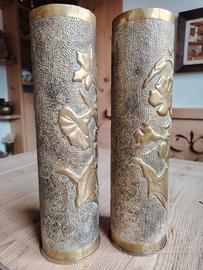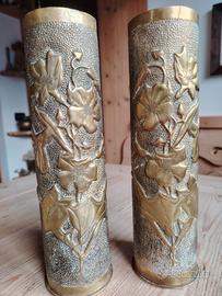 Coppia Di Bossoli Sbalzati Ww1 con decorazioni floreali.