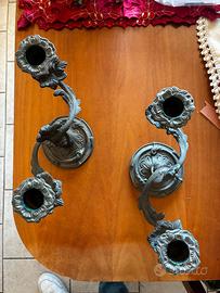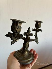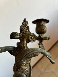 Coppia di candelabri in bronzo o rame (periodo fine '800) a 2 fiamme. la base è circolare e decorata. Ottimo stato di conservazione. Poiché il peso è importante, è disponibile il solo ritiro in zona Porto Viro (RO) con formula visto e piaciuto. Non esitate a contattarmi per eventuali domande.