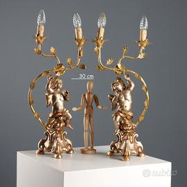 Coppia di candelabri in legno intagliato e dorato. Su una base sagomata di forma triangolare appoggia un putto che regge un torciere in ferro dorato a due fiamme a foggia di ramoscello. Codice: OGANOG0304422 Condizione prodotto: Oggetto in buone condizioni, presenta piccoli segni di usura. Impianto elettrico funzionante non revisionato. Cerchiamo di presentare lo stato reale dell'oggetto nel modo pi completo possibile con le foto. Qualora alcuni particolari non risultassero chiari dalle foto, fa fede quanto riportato nella descrizione. Misure: Largh.:26.00 cm, Alt.:57.00 cm, Prof.:17.00 cm QUESTO ARTICOLO E' DISPONIBILE PRESSO IL NEGOZIO DI CAMBIAGO Venditore: Barbara (dal Luned al Venerd : dalle 9:00 alle 19:00, Sabato: dalle 10:00 alle 19:00) Per maggiori informazioni contattateci su Whatsapp. Disponibile ad inviare video o foto integrative su Whatsapp Di Mano in Mano, Negozio dell'usato di Cambiago, via Castellazzo 8. Oltre 4000mq espositivi, tra usato, vintage, modernariato, antiquariato, arte e libri. Esplora il nostro portale mercatiniusato.org per scoprire centinaia di arredi usati.