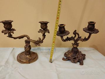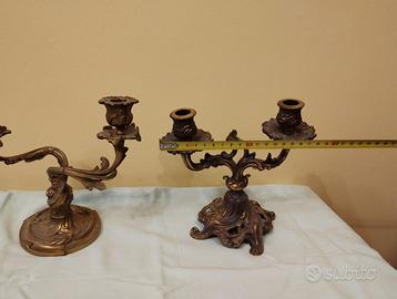 Vendo insieme o singolarmente una coppia di candelieri / portacandele a due bracci, in ottone, della prima metà den novecento.