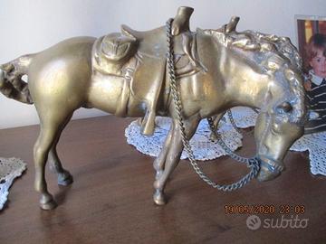 Vendo elegante coppia di cavalli in ottone originali fine 800. In perfette condizioni. Misure L 32 x H 21 cm