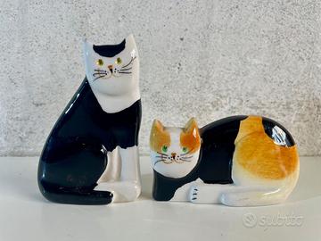 Vendo coppia di formelle smaltate dipinte a mano a forma di gatto.