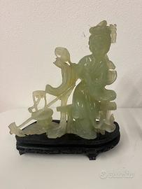 Coppia di giade appartenenti ad un trittico, lavorate a mano e datate 20esimo secolo, presente certificato degli anni 80.