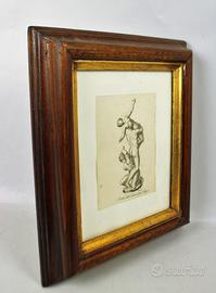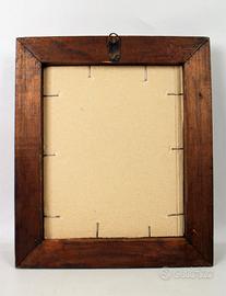 Completa di originale cornice ondulata, in legno di noce coeva, con vetro.