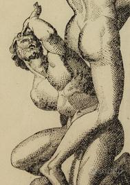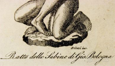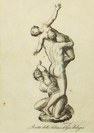 Rappresenta l'opera scultorea nota come il Ratto delle Sabine che fu realizzata da Gianbologna tra il 1574 e il 1580 su commissione della famiglia dei Medici per arredare la cosiddetta Loggia dei Lanzi in Piazza della Signoria a Firenze.