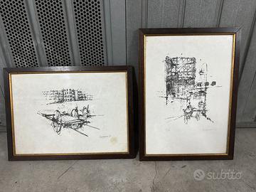 Coppia di incisioni di Vespignani, una delle due in edizione numerata 68/100. Anno 1963