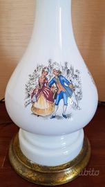Elegante coppia di lampade da tavolo francesi in vetro opalino bianco, originali degli anni '50. Le lampade sono in ottime condizioni estetiche e strutturali, perfettamente conservate.