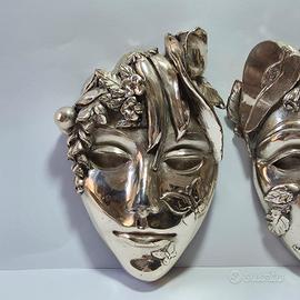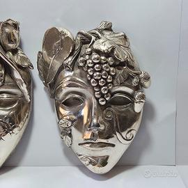 Vecchie maschere per decorazione placcate in argento, risalenti al '900.
