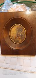 coppia di miniature ad olio con cornice in noce