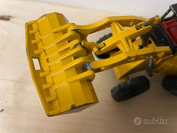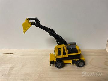 Coppia di modellini di macchine operatrici.Ruspa su ruote snodata e escavatore su ruote Majorette.Scala 1/56 usate. Attacco benna della ruspa con picvolo particolare rotto (vedi foto)