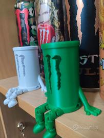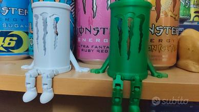 Coppia di piccoli bicchieri con Logo Monster Energy con braccia e gambe. Stampa 3D.